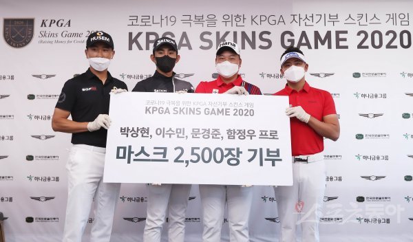 1일 경기도 용인 플라자 컨트리클럽에서 ‘KPGA 스킨스 게임 2020’ 기자회견이 열렸다. 문경준, 이수민, 함정우, 박상현이 포즈를 취하고 있다.