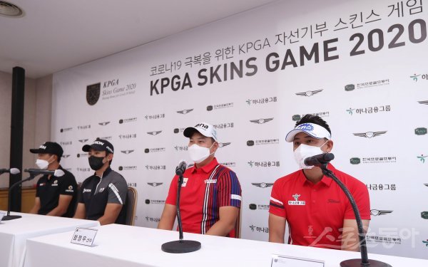 1일 경기도 용인 플라자 컨트리클럽에서 ‘KPGA 스킨스 게임 2020’ 기자회견이 열렸다. 문경준, 이수민, 함정우, 박상현이 취재진의 질문에 답하고 있다.