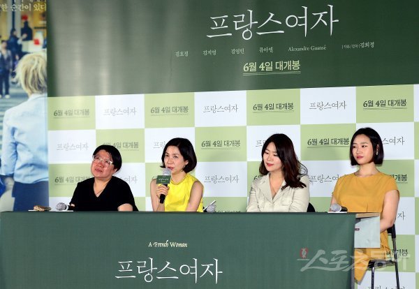 1일 서울 광진구 롯데시네마 건대입구에서 열린 영화 ‘프랑스여자’ 언론시사회에 참석한 감독 및 출연 배우들이 인터뷰를 하고 있다.
