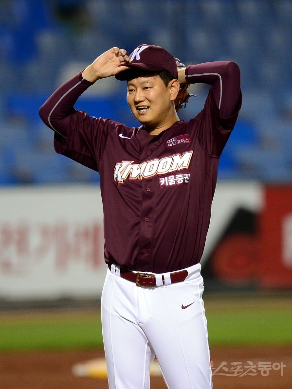 15-3 승리를 거둔 후 키움 양현이 밝게 웃고 있다.