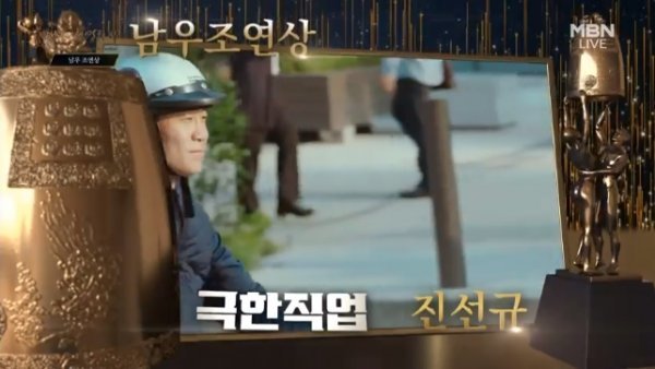 이날 진선규는 남우조연상의 영예를 안았으나 촬영으로 인해 시상식에는 불참했다. 이에 ‘극한직업’ 제작사 어바웃필름의 김성한 대표가 대리 수상했다.