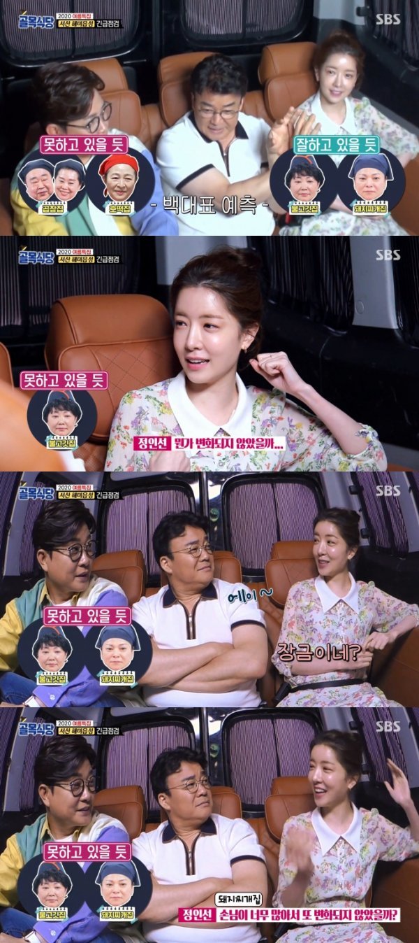 이날 서산으로 향하는 길, 3MC는 방송 이후 식당들의 현 주소를 예측했다. 백종원은 “서산 곱창집이 걱정된다. 솔직히 이야기해서 사람에 대한 선입견은 없지만 사모님이 세고 자기 주장이 강하다. 솔직히 그렇지 않냐”고 우려했다. 정인선은 공감하며 “두건도 드렸는데 여자 사장님만 다른 색깔을 쓰셨더라”고 말했다.
