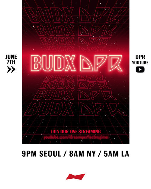 BUDX DPR는 7일 한국시간 오후 9시부터 약 1시간 DPR 크루의 공식 유튜브 채널을 통해 전세계에 생중계된다. 버드와이저는 라이브 퍼포먼스 종료 이후 공연의 하이라이트 영상도 버드와이저 코리아 유튜브 채널을 통해 공개한다. BUDX DPR은 만 19세 이상 인증을 받은 유튜브 계정으로 로그인을 한 후 시청 가능하다.