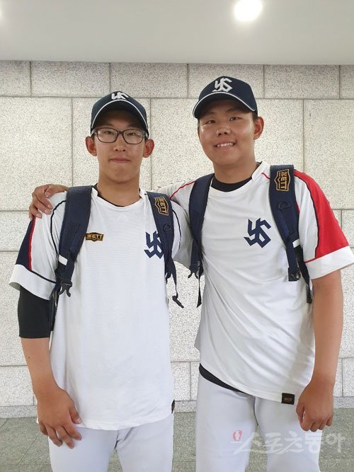 2019년 목동구장에서 열린 제73회 황금사자기 전국고교야구대회 겸 주말리그 왕중왕전 대회에서 유신고 원투펀치로 활약했던 허윤동(왼쪽)과 소형준. 스포츠동아DB