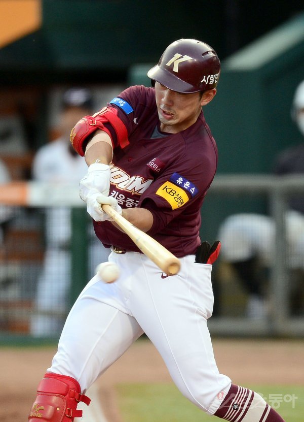 2회초 2사 키움 서건창이 중전 안타를 치고 있다.