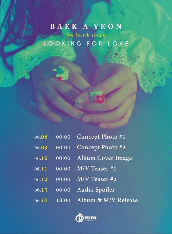 스케줄러에 따르면 백아연은 콘셉트 포토 2종을 비롯해 앨범 커버 이미지, 뮤직비디오 티저 2종, 오디오 스포일러를 순차적으로 공개할 예정이다.