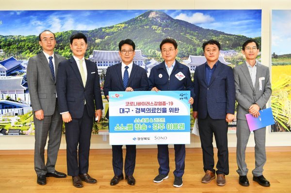 소노호텔&리조트는 4일 경북도청에서 신종 코로나바이러스 감염증(코로나19) 치료에 애쓰는 대구, 경북 지역 의료진과 관계자들에 리조트 숙박권과 워터파크 이용권을 기부했다.
