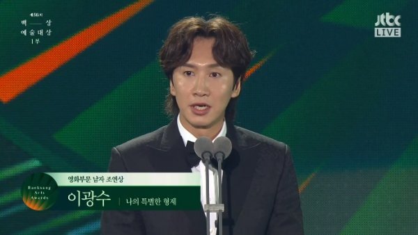 배우 이광수가 영화 부문 남자 조연상을 품에 안았다.