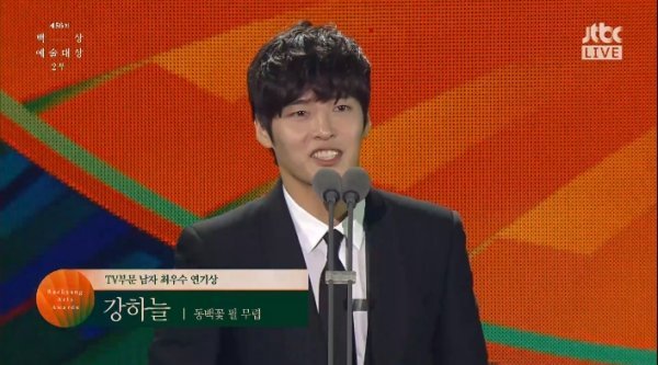이날 강하늘은 드라마 ‘동백꽃 필 무렵’으로 TV 부문 남자 최우수 연기상을 수상했다. 현빈, 박서준, 주지훈, 남궁민 등 쟁쟁한 후보들을 제친 결과였다.