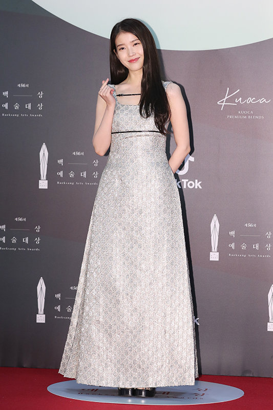 가수 겸 배우 아이유가 5일 경기 일산 킨텍스에서 열린 제56회 백상예술대상(2020 백상예술대상) 포토월 행사에 참석하기 전에 포토타임을 갖고 있다.