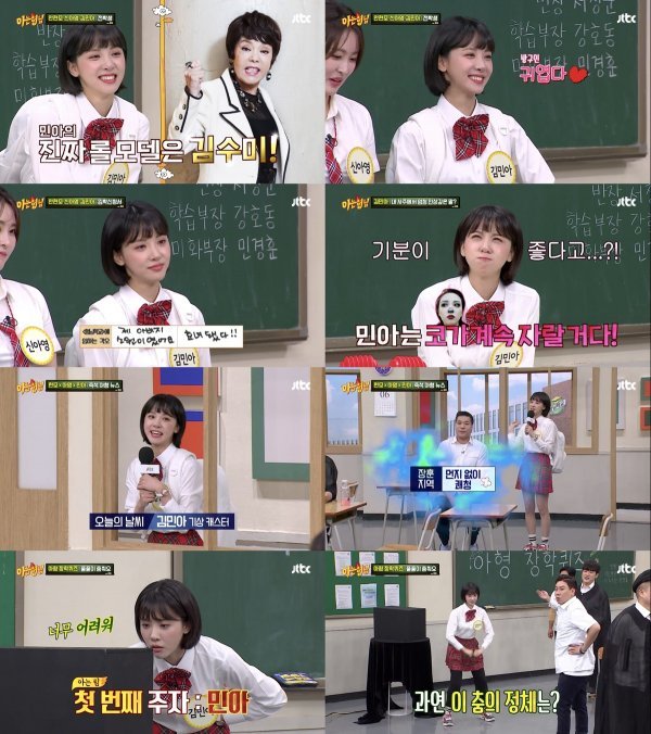 6일 방송된 ‘아는 형님’에서는 ‘뉴스에서 좀 놀았高’에서 전학 온 안현모, 신아영, 그리고 김민아가 전학생으로 출연, 토요일 밤을 웃음으로 수 놓았다.