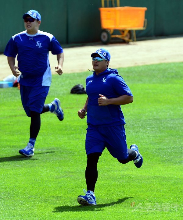 경기 전 1군 복귀를 앞둔 삼성 오승환이 훈련을 하고 있다.