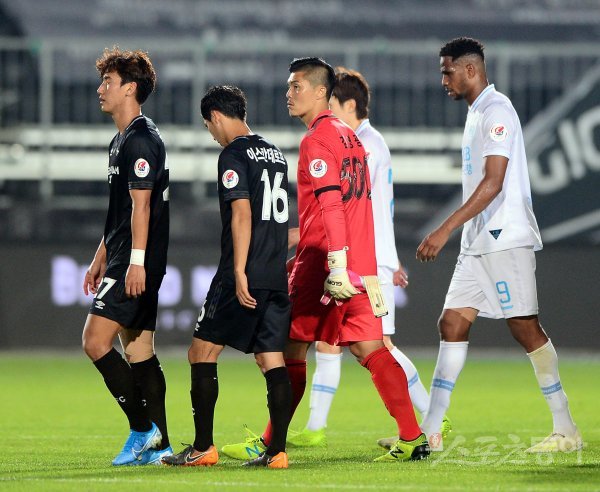 성남이 대구에 1-2로 패배한 뒤 김영광이 무덤덤한 표정으로 아쉬움을 감추고 있다.