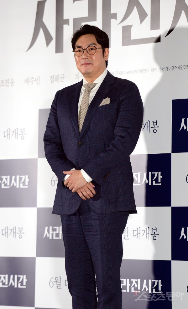배우 조진웅이 9일 서울 광진구 롯데시네마 건대입구에서 열린 영화 ‘사라진시간’ 언론시사회에서 참석해 포토타임을 갖고 있다.