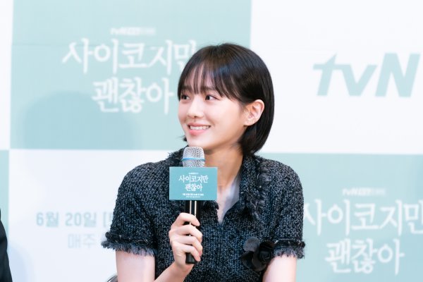 배우 박규영이 10일 진행된 tvN 드라마 ‘사이코지만 괜찮아’ 제작발표회에서 취재진의 질문에 답하고 있다.