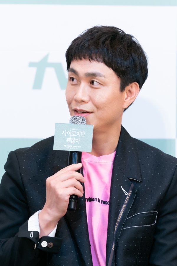 배우 오정세가 10일 진행된 tvN 드라마 ‘사이코지만 괜찮아’ 제작발표회에서 취재진의 질문에 답하고 있다.