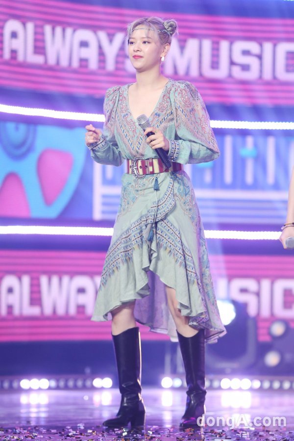 그룹 트와이스의 정연이 10일 오후 경기 일산 드림센터에서 열린 MBC M 음악프로그램 생방송 \'쇼 챔피언\'에서 무대를 선보이고 있다.
