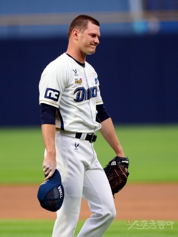 10일 경남 창원NC파크에서 ‘2020 신한은행 SOL KBO리그’ NC 다이노스와 두산 베어스의 경기가 열렸다. 1회초 수비를 마친 뒤 홈런을 허용한 NC 루친스키가 아쉬워하고 있다.