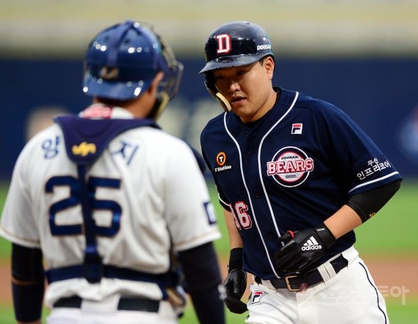 10일 경남 창원NC파크에서 ‘2020 신한은행 SOL KBO리그’ NC 다이노스와 두산 베어스의 경기가 열렸다. 1회초 2사 두산 오재일이 선취 솔로 홈런을 날린 뒤 그라운드를 돌고 있다.
