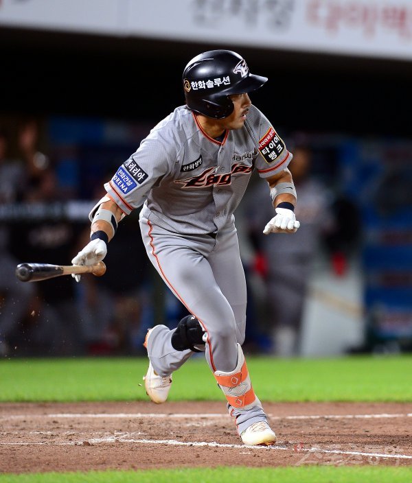 5회초 1사 1, 3루에서 한화 이용규가 1타점 적시타를 날리고 있다.