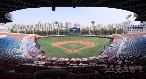 14일 서울 목동야구장에서 ‘제74회 황금사자기 전국고교야구대회 겸 주말리그 왕중왕전’ 광주진흥고등학교와 의정부 상우고등학교의 경기가 무관중으로 열렸다. 목동 | 주현희 기자 teth1147@donga.com