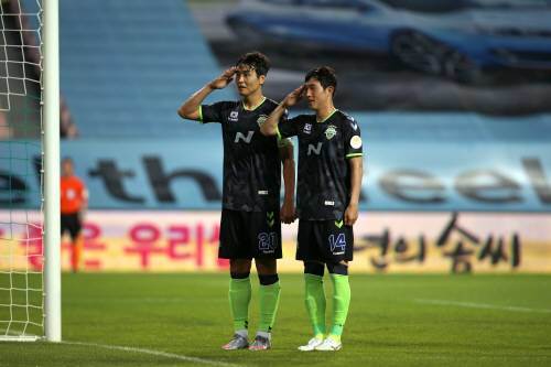 전북 선수들은 이날 ‘순국선열 헌정유니폼’을 입고 나왔다. 호국보훈의 의미를 되새기고 호국 영령의 뜻을 기리기 위한 이벤트다. 2015년부터 시작해 5년째인 올해는 강인한 이미지의 검정 컬러를 카모플라주(위장) 패턴으로 제작했고, 팀의 상징인 녹색을 포인트로 삽입했다. 또 한국전쟁 70주년을 맞아 당시 UN군으로 참전한 16개국과 의료지원을 했던 5개국의 국기를 유니폼 등번호 속에 담았다. 경기 후 이동국은 “6월은 호국보훈의 달이다. 나라를 지켜주셨던 분들에게 감사함을 표현해야하는 것이 맞다고 생각했다. 팬들이 경기장에 오시지 못하기 때문에 TV를 통해서라도 볼거리를 제공해야 한다고 판단했다”고 밝혔다. 거수경례엔 순국선열에 대한 고마움이 담겨 있었다.