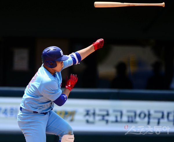 14일 서울 목동야구장에서 ‘제74회 황금사자기 전국고교야구대회 겸 주말리그 왕중왕전’ 부산고등학교와 파주 율곡고등학교의 경기가 열렸다. 3회초 2사 부산고 박성재가 스윙 중 배트를 놓치고 있다.
