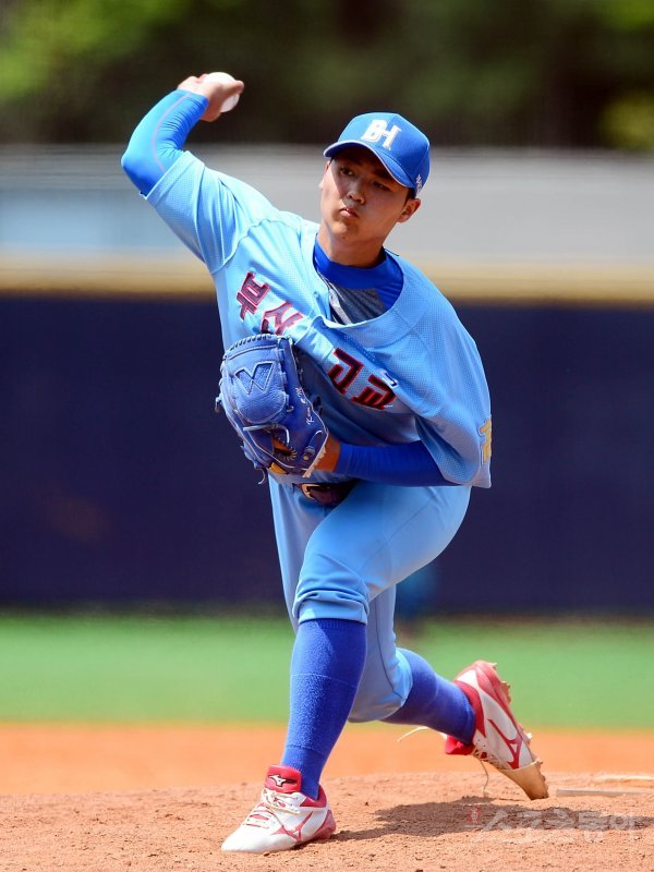 14일 서울 목동야구장에서 ‘제74회 황금사자기 전국고교야구대회 겸 주말리그 왕중왕전’ 부산고등학교와 파주 율곡고등학교의 경기가 열렸다. 5회초 무사 1루 상황에서 부산고 감성민이 교체로 마운드에 올라 역투하고 있다.