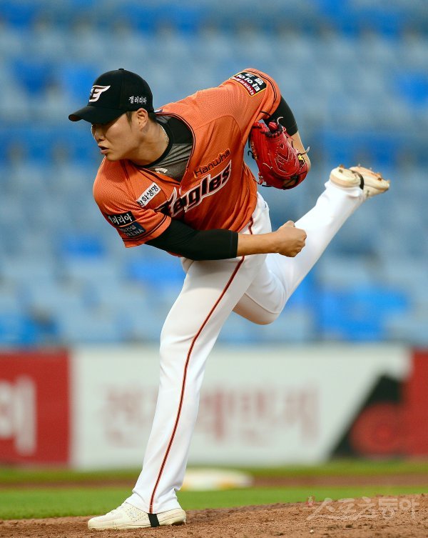 9회초 등판해 1이닝을 무실점으로 막으며 세이브를 따낸 한화 문동욱이 역투하고 있다.