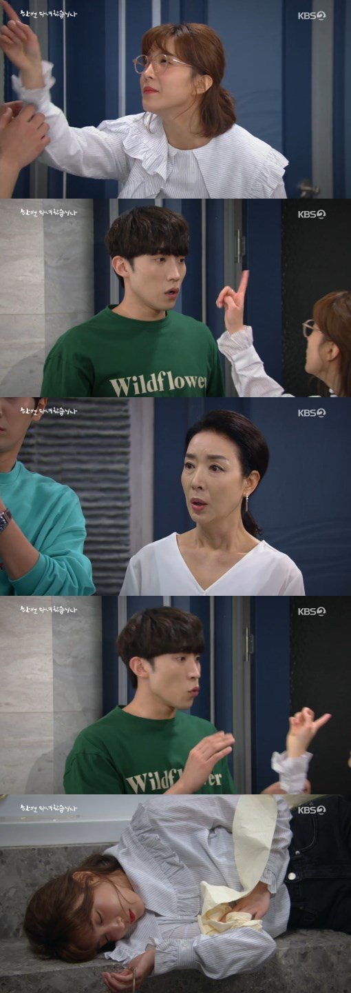 14일 방송된 KBS 2TV 주말드라마 ‘한 번 다녀왔습니다’에서는 송다희(이초희 분)는 술에 잔뜩 취해 윤재석(이상이 분) 집에 쳐들어갔다. 집에는 윤규진(이상엽 분), 장옥분(차화연 분)이 같이 있었다.