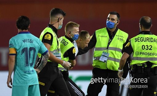 리오넬 메시와 난입한 관중. 사진=게티이미지코리아