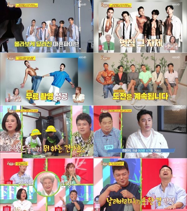 어제 방송에서는 지난 3개월간 양치승의 지도하에 열심히 운동을 해온 마흔파이브가 대회를 하루 앞두고 보디 프로필을 촬영하는 현장이 공개되었다.