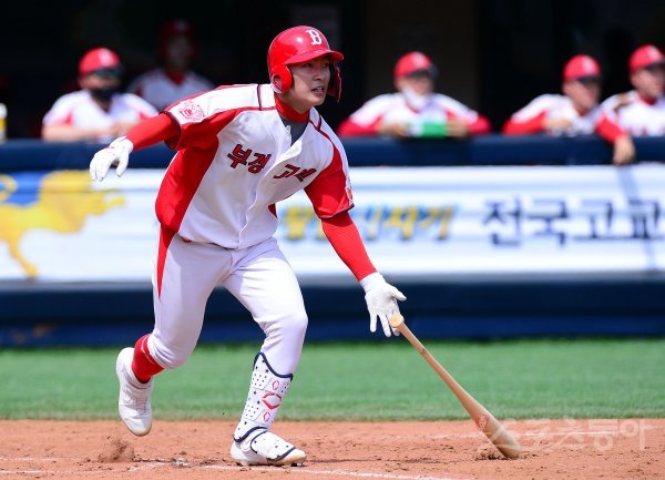 15일 서울 목동야구장에서 ‘제 74회 황금사자기 전국고교야구대회 겸 주말리그 왕중왕전’ 부산 부경고등학교와 서울 충암고등학교의 경기가 열렸다. 2회말 1사 1, 3루에서 부경고 박성윤이 1타점 적시타를 날리고 있다.