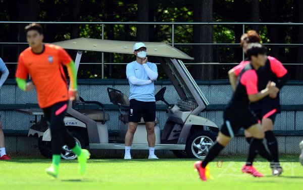 U-19 남자 축구대표팀이 신종 코로나바이러스(코로나19) 이후 남녀 대표팀 처음으로 15일 파주 축구대표팀트레이닝센터(NFC)에서 소집 훈련을 가졌다. 김정수 감독이 선수들의 훈련 모습을 바라보고 있다.