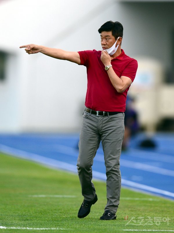 16일 강릉종합운동장에서 열린 프로축구 ‘하나원큐 K리그1 2020’ 2위 울산현대와 3위 강원FC 경기에서 강원 김병수 감독이 작전 지시를 히고 있다.