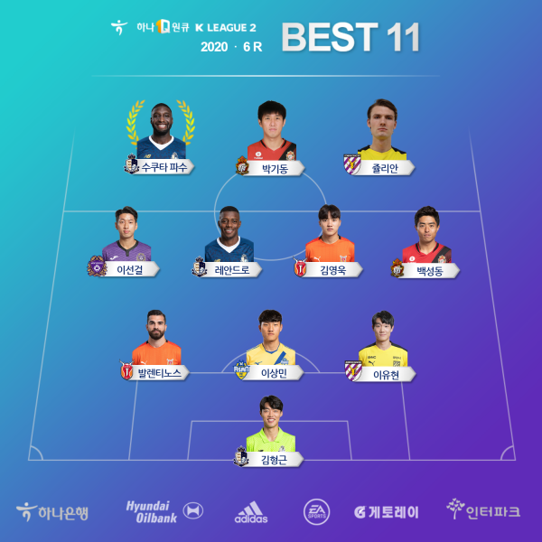 하나원큐 K리그2 2020 6R MVP, 베스트11, 팀, 매치