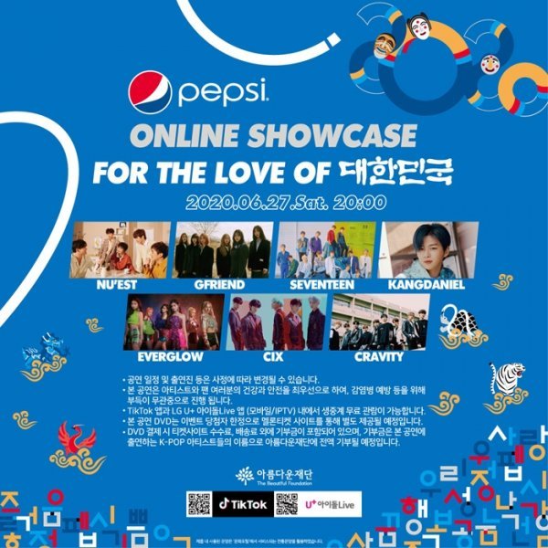‘2020 펩시 온라인 쇼케이스 포 더 러브 오브 대한민국(2020 PEPSI ONLINE SHOWCASE FOR THE LOVE OF 대한민국, 이하 ‘펩시 온라인 쇼케이스’)’은 27일 개최된다.