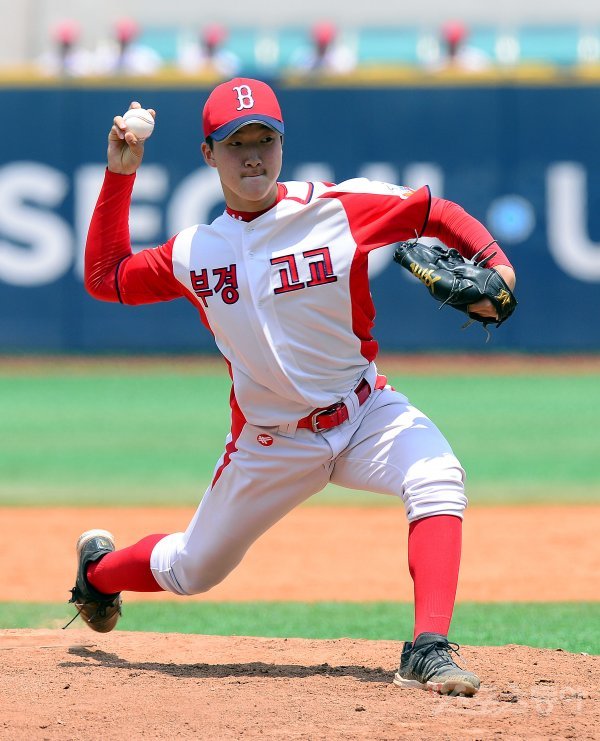 17일 서울 목동야구장에서 ‘제 74회 황금사자기 전국고교야구대회 겸 주말리그 왕중왕전’ 부산 부경고등학교와 춘천 강원고등학교의 16강 경기가 열렸다. 부경고 선발투수 진강철이 힘차게 볼을 던지고 있다.