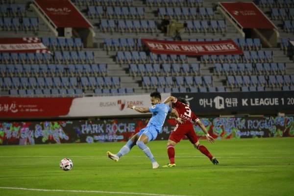 두 팀은 전반 시작과 동시에 활발한 공격 작업으로 서로의 골문을 노렸다. 부산이 이동준의 돌파로 첫 슈팅을 기록했고, 전반 5분 부산 아크써클 정면에서 기회를 잡은 세징야가 오른발 슈팅으로 맞불을 놨다.