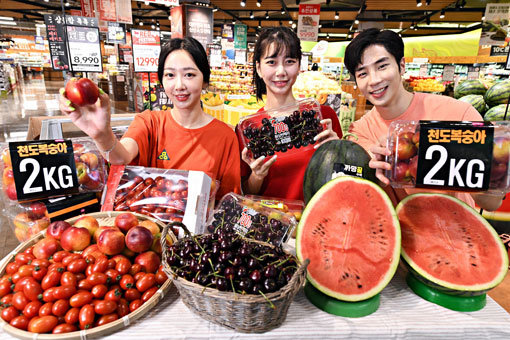 홈플러스가 24일까지 ‘레드 페스티벌’을 연다. 수박, 천도복숭아, 대추 방울토마토, 자두, 체리 등 면역력 증가와 노화 방지에 도움을 주는 빨간 과일을 저렴하게 선보인다. 신종 코로나바이러스 감염증(코로나19) 사태와 이른 폭염으로 지친 고객들의 일상에 활기와 에너지를 준다는 취지로 마련했다.