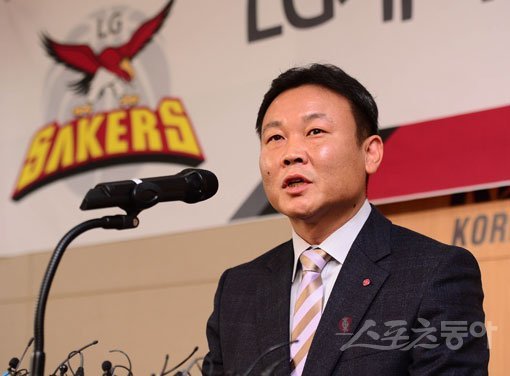 창원 LG 조성원 감독은 팀 훈련을 지휘하면서 선수들이 농구 자체에 흥미를 느낄 수 있도록 신경 쓰고 있다. 선수들이 스스로 느끼고 움직여야 조 감독이 바라는 공격적인 농구가 가능하다고 믿기 때문이다. 4월 LG 사령탑 취임 기자회견 당시의 조 감독. 스포츠동아DB