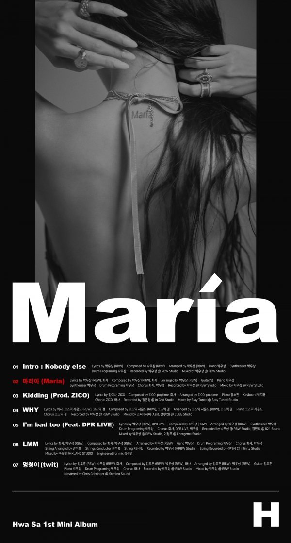 그룹 마마무 화사가 첫 미니앨범 \'Maria(마리아)\'의 트랙리스트를 공개했다.