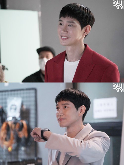 사진 속 박성훈은 강렬한 분위기의 레드 수트와 부드러운 색감의 베이지 수트를 소화해 눈길을 사로잡는다. 카메라를 응시하며 흐뭇한 미소를 지어 보이는 한편, 극중 원칙주의자 캐릭터에 몰입해 시계를 바라보는 박성훈의 부드러운 카리스마가 돋보인다. 앞서 공개된 ‘출사표’ 캐릭터 포스터에서 감정을 드러내지 않는 듯 무표정한 모습과는 180도 다른 매력이다.