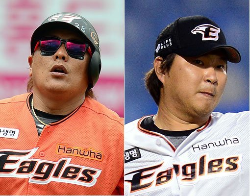 한화 김태균(왼쪽)-이현호. 스포츠동아DB
