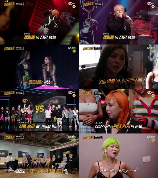 지난 방송에서 ‘굿걸’ 크루들은 마미손, 나플라와 루피, 리듬파워로 구성된 ‘쇼미더머니’의 주인공들을 세 번째 퀘스트 상대로 맞이했다. 첫 라운드는 예상을 뒤 엎은 마미손의 감성적인 무대와 상큼하고 사랑스러운 곡에 도전한 장예은이 맞붙었고, 장예은의 승리로 마무리 됐다.