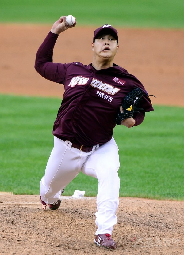 9회말 키움 조상우가 교체로 마운드에 올라 역투하고 있다.