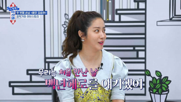 지난 1월 공개 연애 중이던 예능 작가 여자친구와 백년가약을 맺은 김승현은 연애부터 결혼까지 풀스토리를 공개한다. MC 오정연이 프로그램 출연자와 작가의 로맨틱한 만남에 대해 “첫눈에 반했냐”고 묻자 김승현은 “일하는 모습에 호감을 느꼈다”라고 수줍게 답하기도 했다. 특히, 김승현이 처음 연인으로 발전하게 된 계기를 설명하는 과정에서 세 MC는 돌고래 리액션과 함께 높은 집중도를 보였다고.