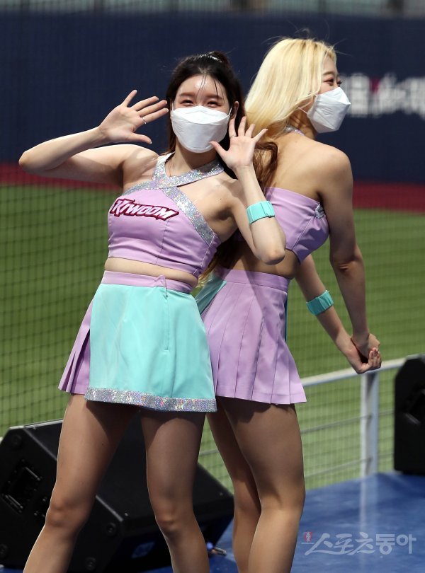 키움 치어리더들이 응원 단상에서 공연을 펼치고 있다.