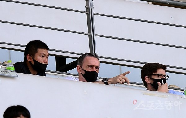 28일 울산 문수월드컵경기장에서 열린 ‘하나원큐 K리그1 2020’ 울산 현대와 전북현대의 경기에서 축구대표팀 벤투 감독이 경기를 지켜보고 있다.