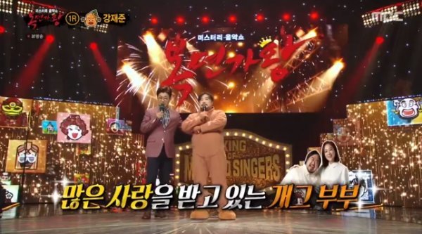 마지막 무대에서는 오징어와 땅콩 가면을 쓴 두 가수의 무대가 공개됐다. 땅콩 가면을 쓴 인물은 개그맨 강재준이었다.